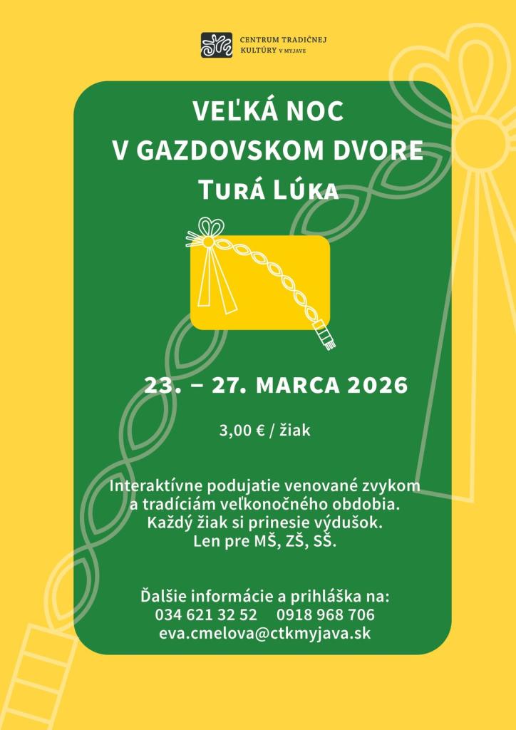 Prijímatelia sociálnej služby sa zúčastnia výchovno-vzdelávacieho podujatia venovaného jarnému sviatku - Veľkej noci. Na podujatie je odchod o 11.45 h., príchod o 13.05 h. Odvoz na Gazdovský dvor je zabezpečený.